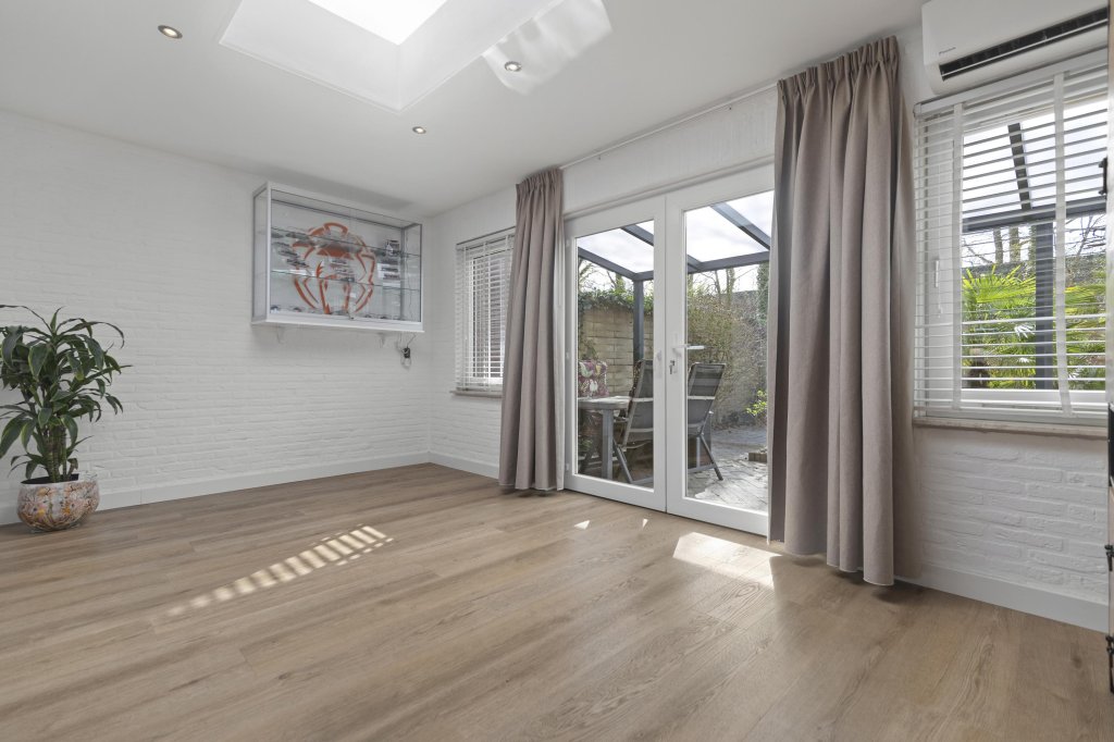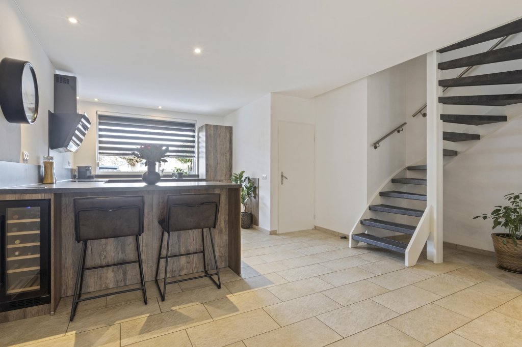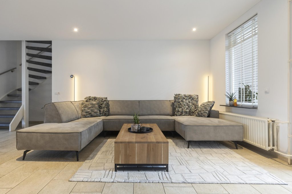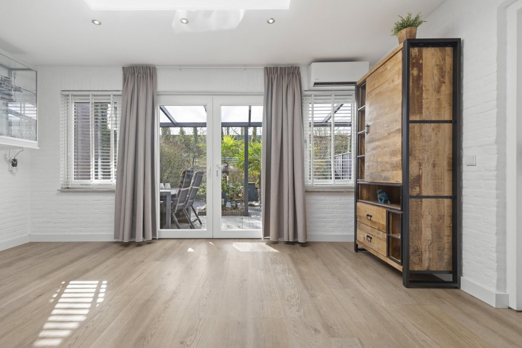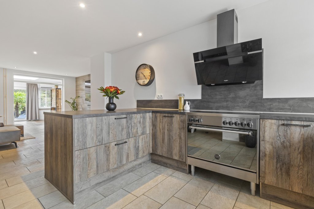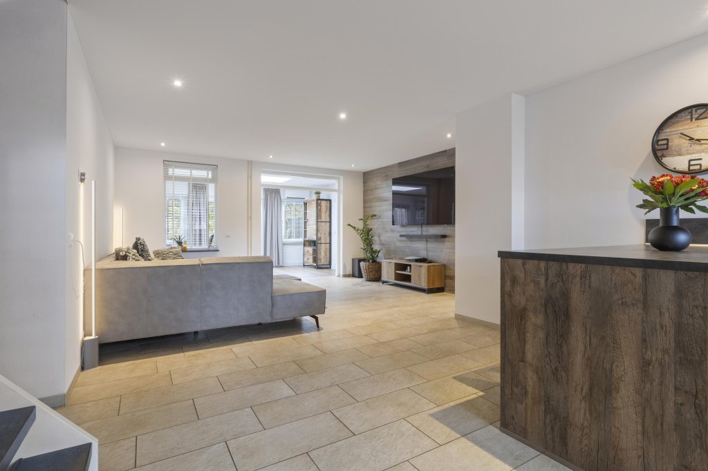 Via de entreehal met toiletruimte en meterkast betreedt u de ruime living. De woonkamer voelt direct prettig aan en vormt een fijne leefruimte voor het hele gezin en staat in open verbinding met de moderne keuken. De U-vormige keuken is compleet uitgerust met een 5-pits inductiekookplaat, afzuigkap, vaatwasser, koelkast, vriezer, combi-oven en wijnkoeler. Aan de achterzijde is een ruime tuinkamer gerealiseerd met prettig tuincontact. Vanuit de tuinkamer is de bijkeuken met witgoedaansluitingen te bereiken.