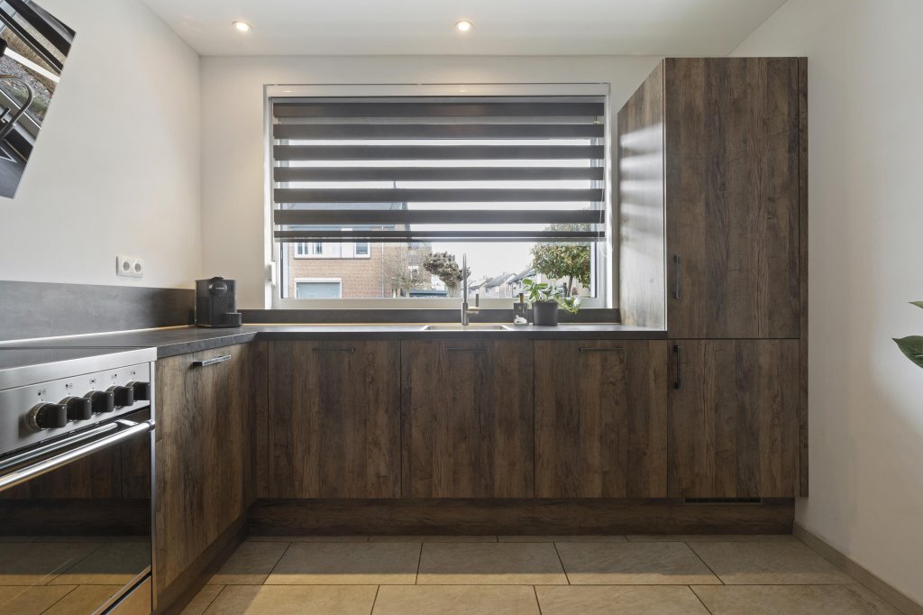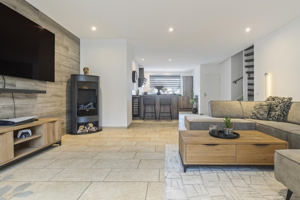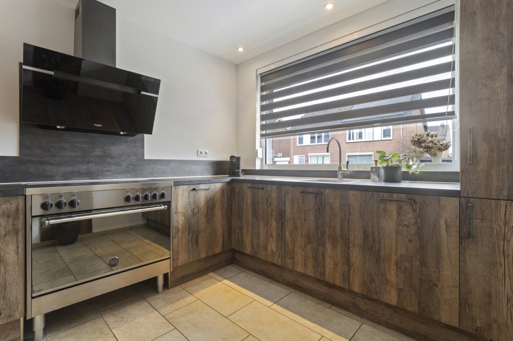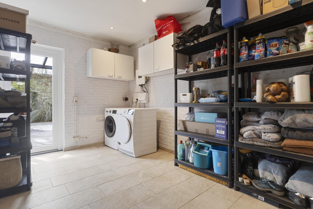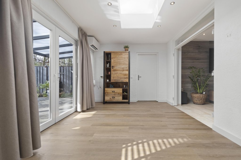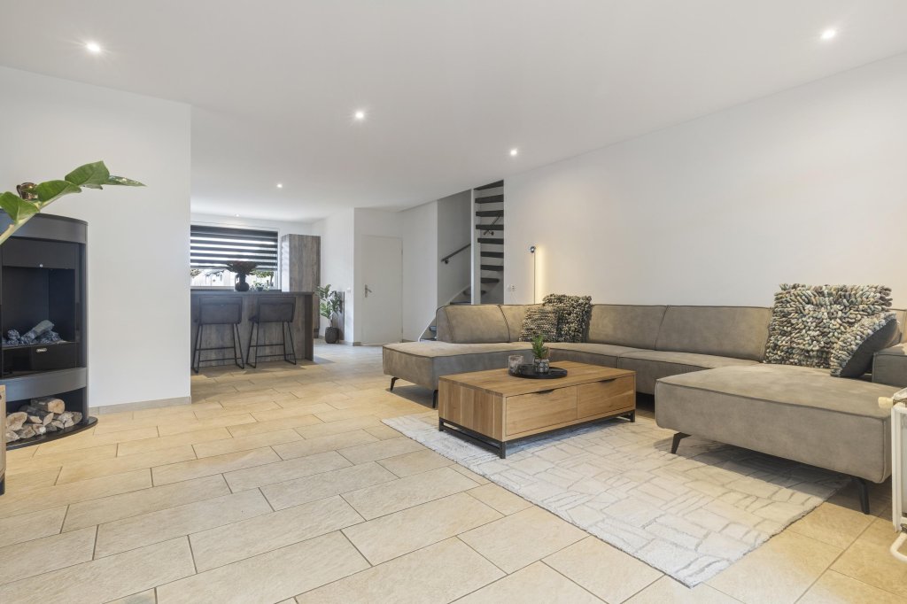 Via de entreehal met toiletruimte en meterkast betreedt u de ruime living. De woonkamer voelt direct prettig aan en vormt een fijne leefruimte voor het hele gezin en staat in open verbinding met de moderne keuken. De U-vormige keuken is compleet uitgerust met een 5-pits inductiekookplaat, afzuigkap, vaatwasser, koelkast, vriezer, combi-oven en wijnkoeler. Aan de achterzijde is een ruime tuinkamer gerealiseerd met prettig tuincontact. Vanuit de tuinkamer is de bijkeuken met witgoedaansluitingen te bereiken.