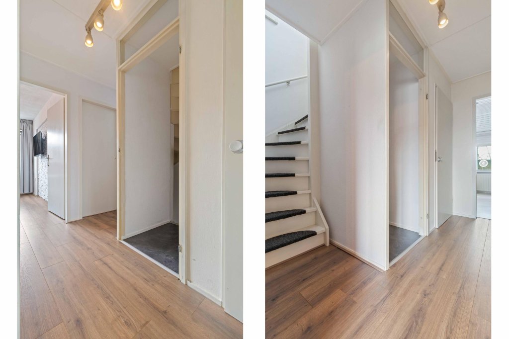Overloop met bergkast en toegang tot de drie slaapkamers en de badkamer.