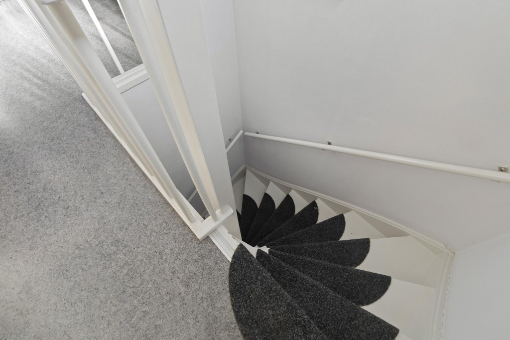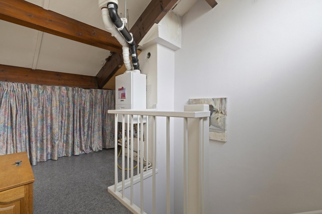 Overloop met toegang tot de vierde slaapkamer (ca. 9m²), standplaats cv-installatie (huur, 2016) en voldoende bergruimte.