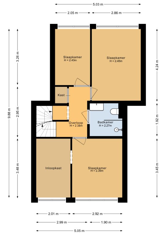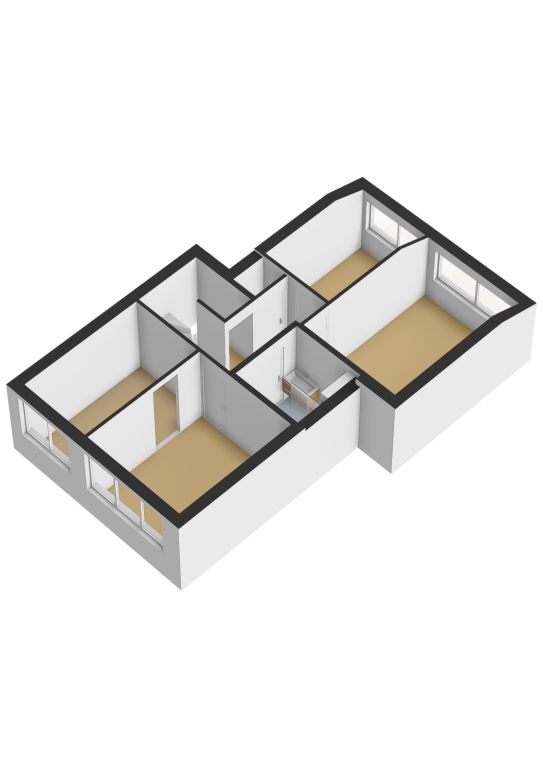 - Slaapkamer 3: ca. 7 m² gelegen aan de achterzijde;