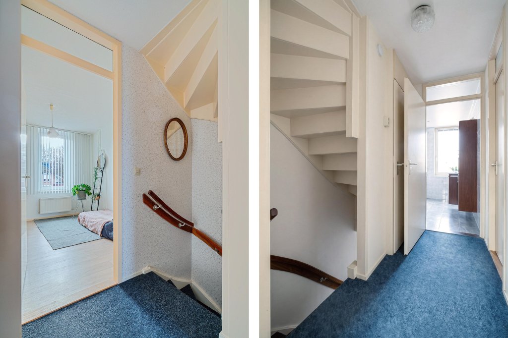 De overloop biedt toegang tot drie slaapkamers, ideaal als ouderslaapkamer, kinderkamer of thuiskantoor.
