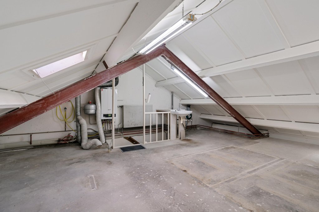 Via een vaste trap bereikt u de tweede verdieping. Hier bevindt zich een ruime zolder, uitstekend geschikt als extra slaapkamer, hobbyruimte of werkkamer.