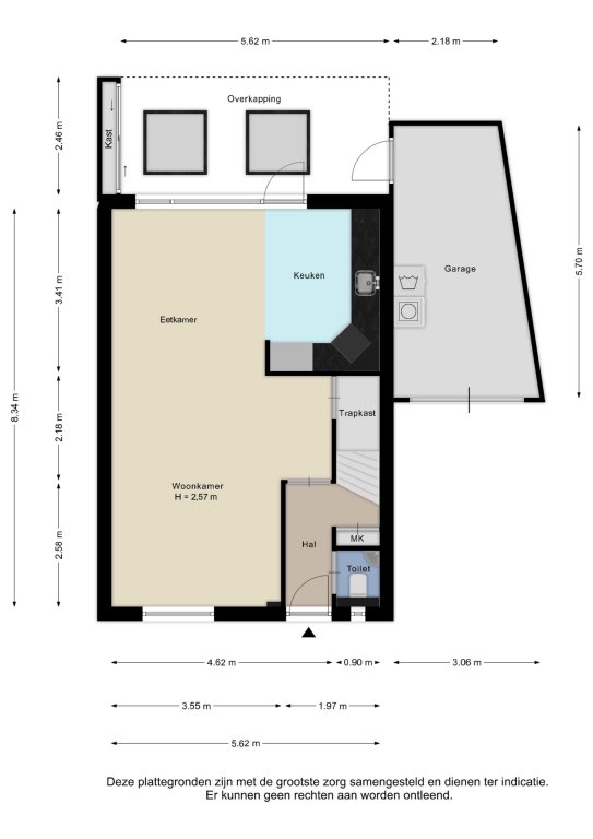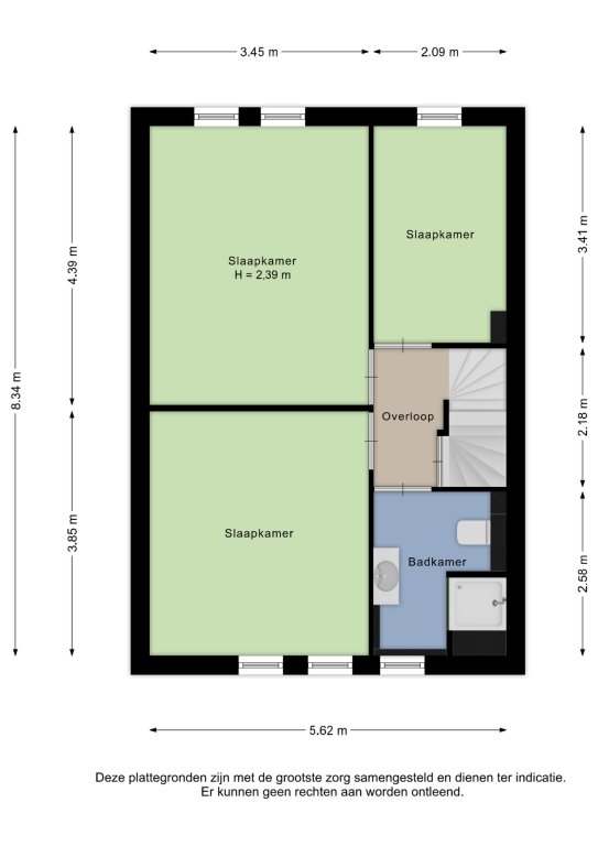 Alle door ons kantoor verstrekte informatie omtrent onroerende zaken, moet beschouwd worden als een uitnodiging om in onderhandeling te treden, en is geheel vrijblijvend! Alle vermelde maten en afmetingen zijn slechts bij benadering. Aan deze beperkte informatie kunnen geen rechten worden ontleend. Indien in enige documentatie of op enige website informatie staat die niet overeen komt met de werkelijkheid, dan geldt de feitelijke situatie waarin de woning zich bevindt, zoals koper deze tijdens de bezichtiging heeft kunnen waarnemen, en wordt de woning in deze feitelijke situatie/staat verkocht. Een (eventueel) bijgevoegde plattegrond dient uitsluitend als globale indicatie/visualisatie. Hieraan kunnen uitdrukkelijk geen rechten worden ontleend.