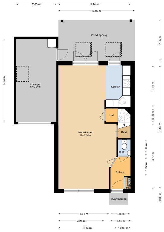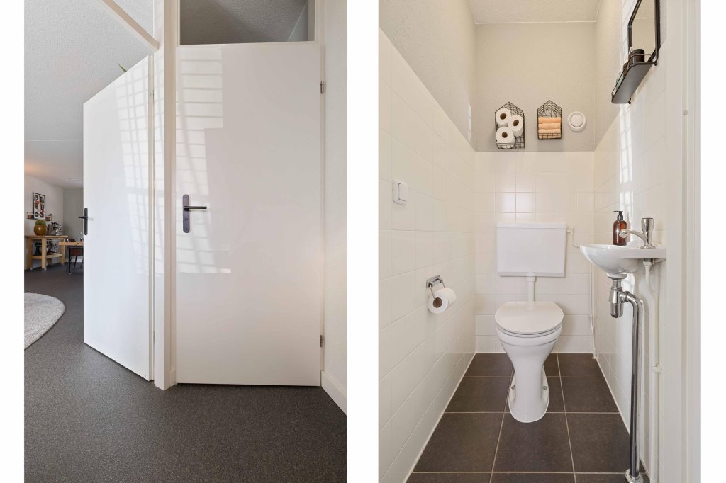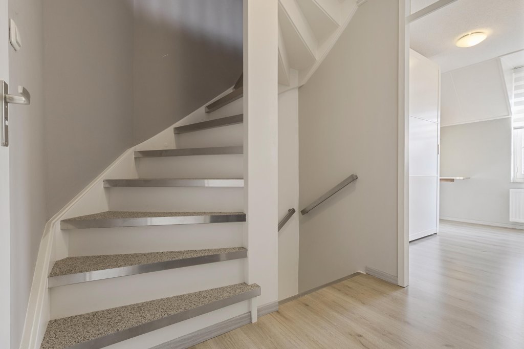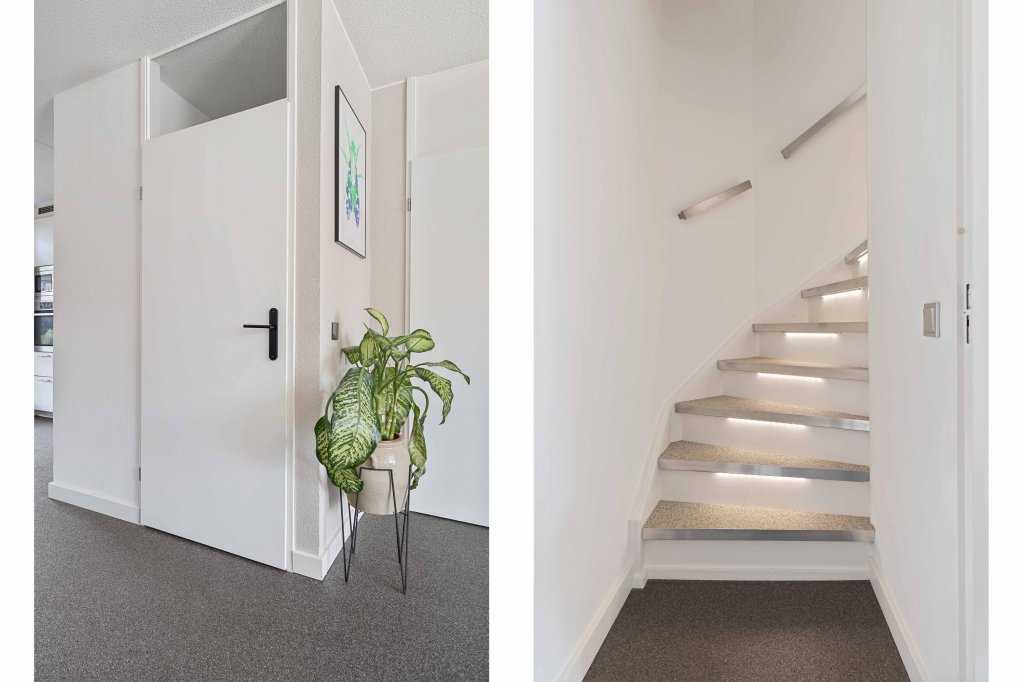Via de entreehal met moderne toiletruimte en meterkast betreedt u de begane grond. De lichte woonkamer voelt direct prettig aan en vormt een fijne leefruimte voor het hele gezin. De gehele begane grond is voorzien van grindvloer met vloerverwarming. De L-vormige keuken is compleet uitgerust met een 4-pits inductiekookplaat, afzuigkap, vaatwasser, koelkast, vriezer, magnetron en oven. Met dubbele openslaande deuren is de achtertuin bereikbaar.