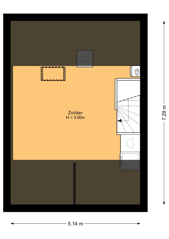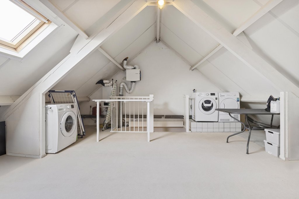 De tweede verdieping met toegang tot de vierde slaapkamer (niet meegenomen in de woonoppervlakte). Verder bevindt zich hier de opstelling van de c.v.-combiketel (eig. 2016) en de wasmachineaansluitingen.
