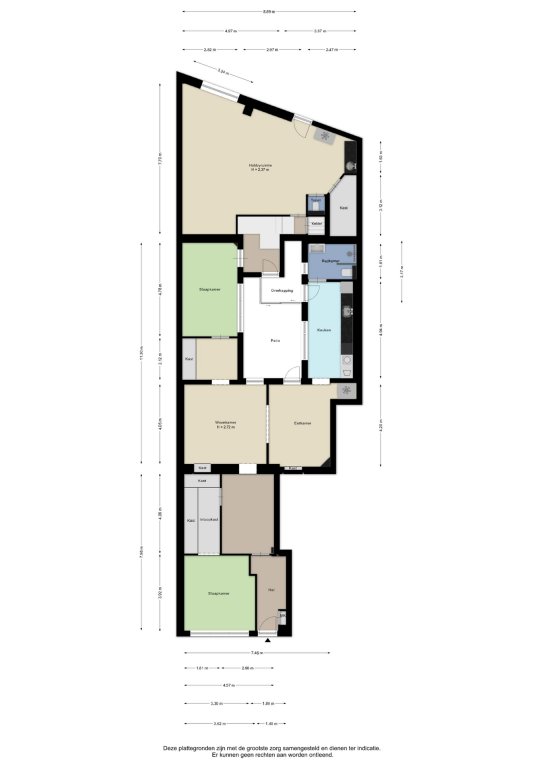 Alle door ons kantoor verstrekte informatie omtrent onroerende zaken, moet beschouwd worden als een uitnodiging om in onderhandeling te treden, en is geheel vrijblijvend! Alle vermelde maten en afmetingen zijn slechts bij benadering. Aan deze beperkte informatie kunnen geen rechten worden ontleend. Indien in enige documentatie of op enige website informatie staat die niet overeen komt met de werkelijkheid, dan geldt de feitelijke situatie waarin de woning zich bevindt, zoals koper deze tijdens de bezichtiging heeft kunnen waarnemen, en wordt de woning in deze feitelijke situatie/staat verkocht. Een (eventueel) bijgevoegde plattegrond dient uitsluitend als globale indicatie/visualisatie. Hieraan kunnen uitdrukkelijk geen rechten worden ontleend.