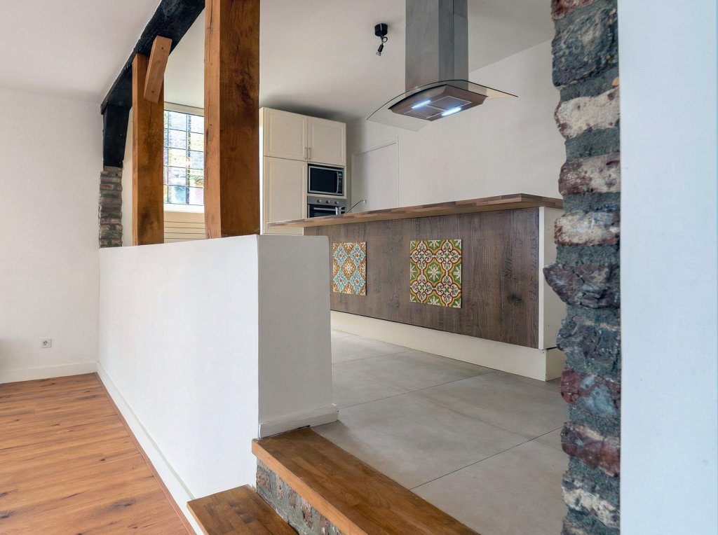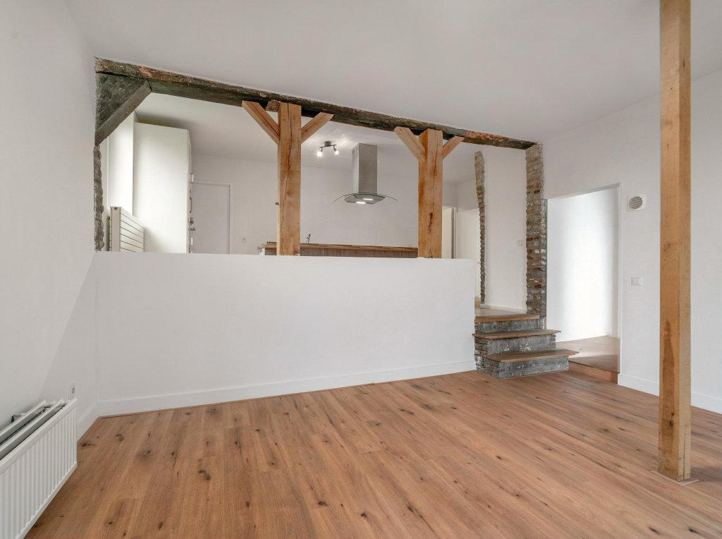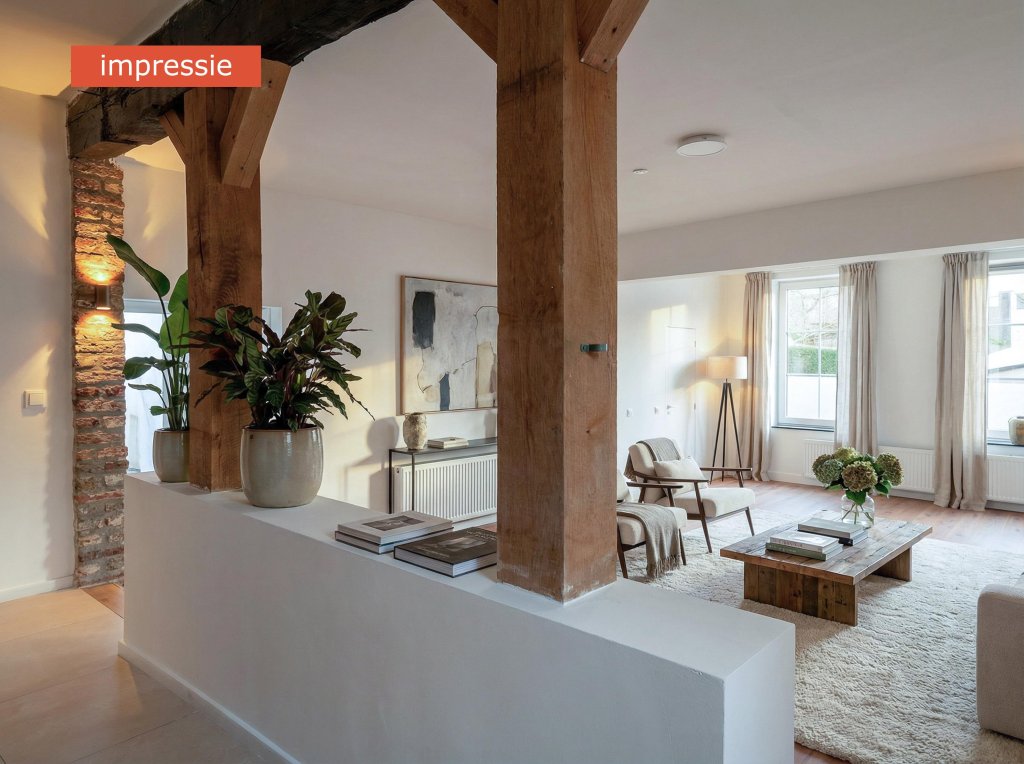 - De combinatie van moderne afwerking en authentieke balken zorgt voor een unieke uitstraling.