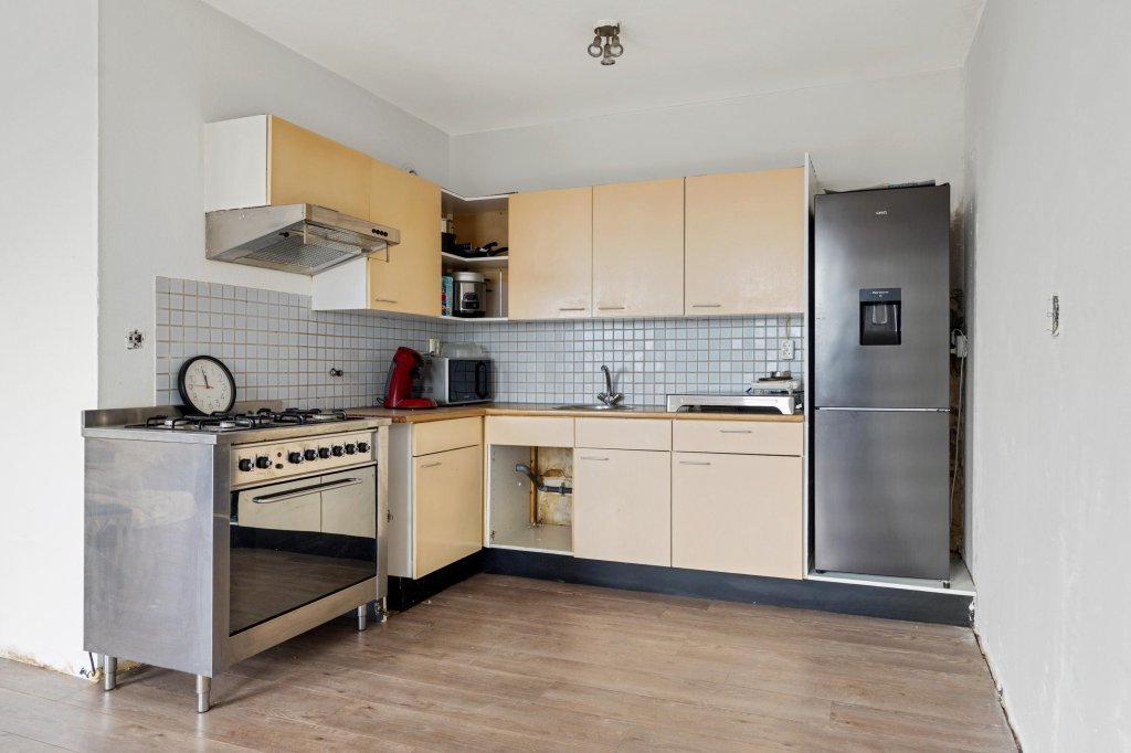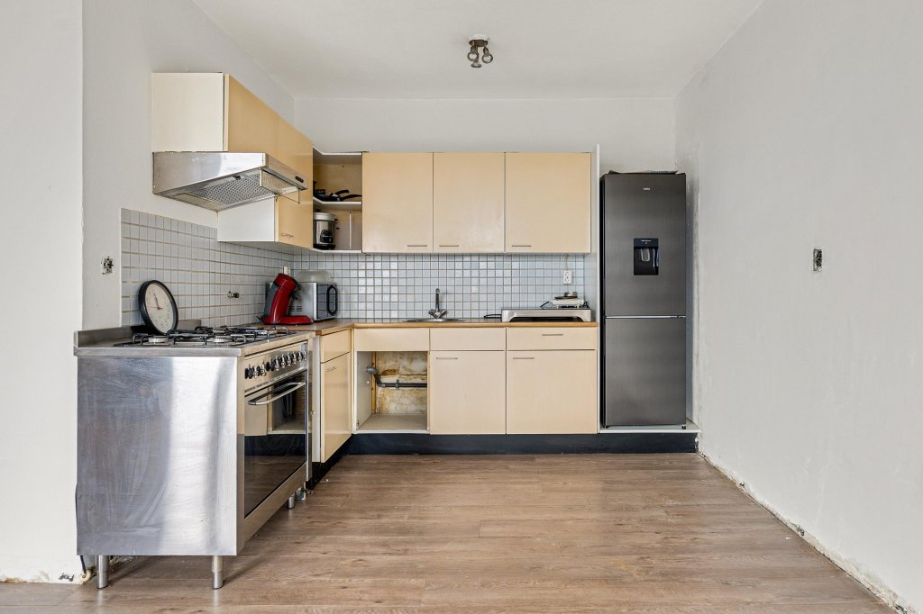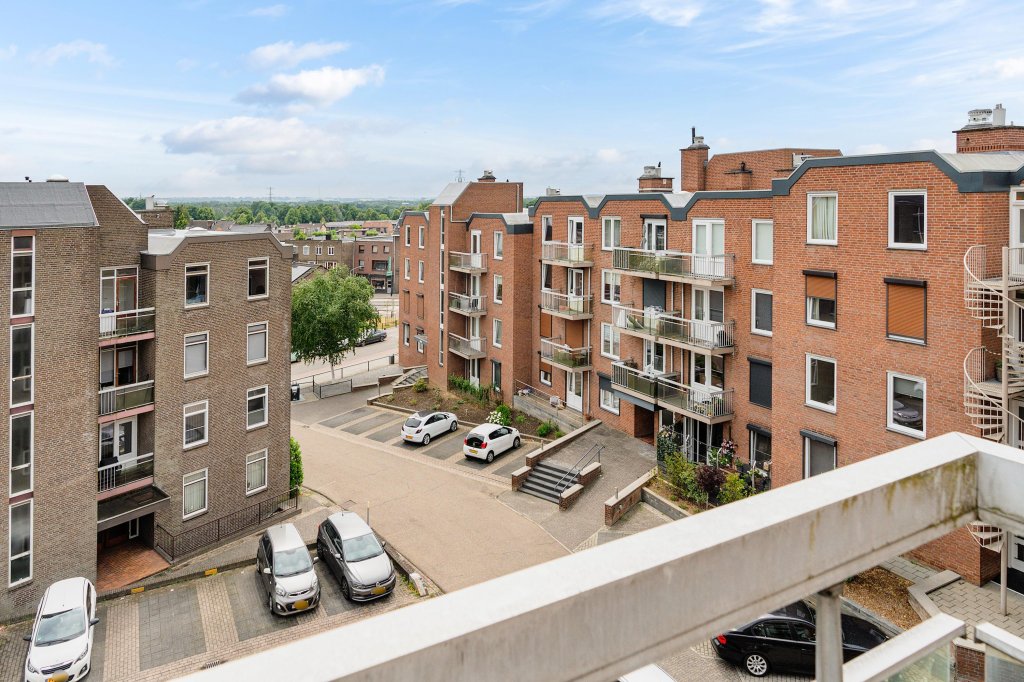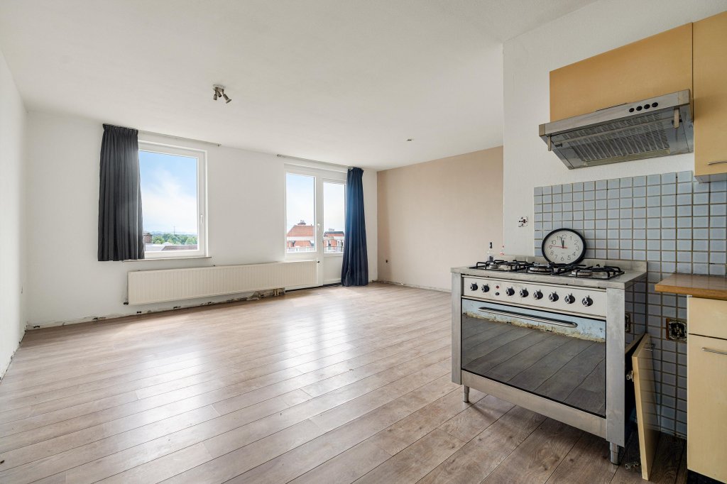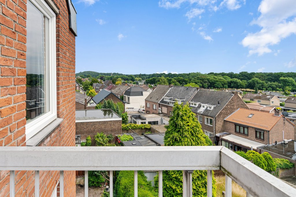 De woonkamer is ruim en licht, met hardhouten kozijnen en dubbele beglazing. Vanuit de woonkamer is er toegang tot het eerste balkon, dat zonnig is gelegen en een vrij uitzicht biedt over Heerlen. De open keuken is uitgerust met een 5-pits gasfornuis, een brede hete luchtoven, koelkast, wasemkap en diverse boven- en onderkasten.
