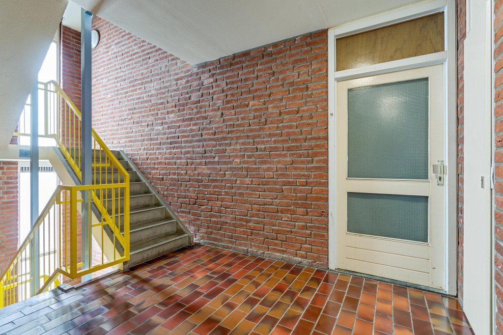 Centrale entree met bellentableau, brievenbussen en trappenhuis. Er is geen lift aanwezig.