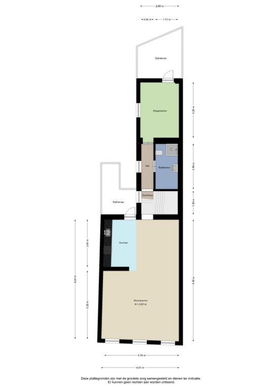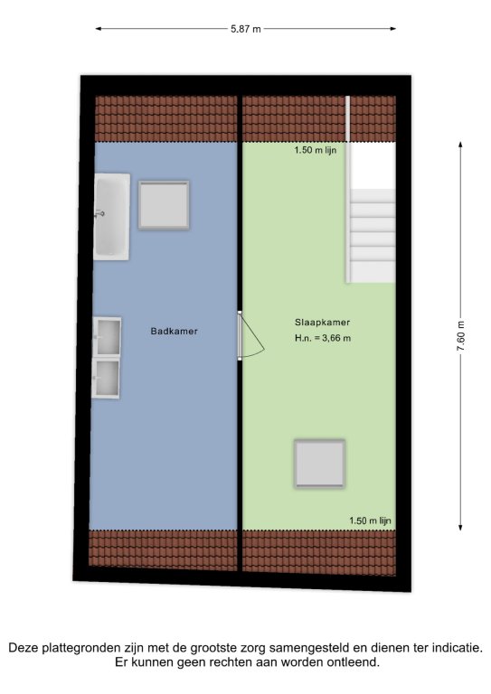 Alle door ons kantoor verstrekte informatie omtrent onroerende zaken, moet beschouwd worden als een uitnodiging om in onderhandeling te treden, en is geheel vrijblijvend! Alle vermelde maten en afmetingen zijn slechts bij benadering. Aan deze beperkte informatie kunnen geen rechten worden ontleend. Indien in enige documentatie of op enige website informatie staat die niet overeen komt met de werkelijkheid, dan geldt de feitelijke situatie waarin de woning zich bevindt, zoals koper deze tijdens de bezichtiging heeft kunnen waarnemen, en wordt de woning in deze feitelijke situatie/staat verkocht. Een (eventueel) bijgevoegde plattegrond dient uitsluitend als globale indicatie/visualisatie. Hieraan kunnen uitdrukkelijk geen rechten worden ontleend.