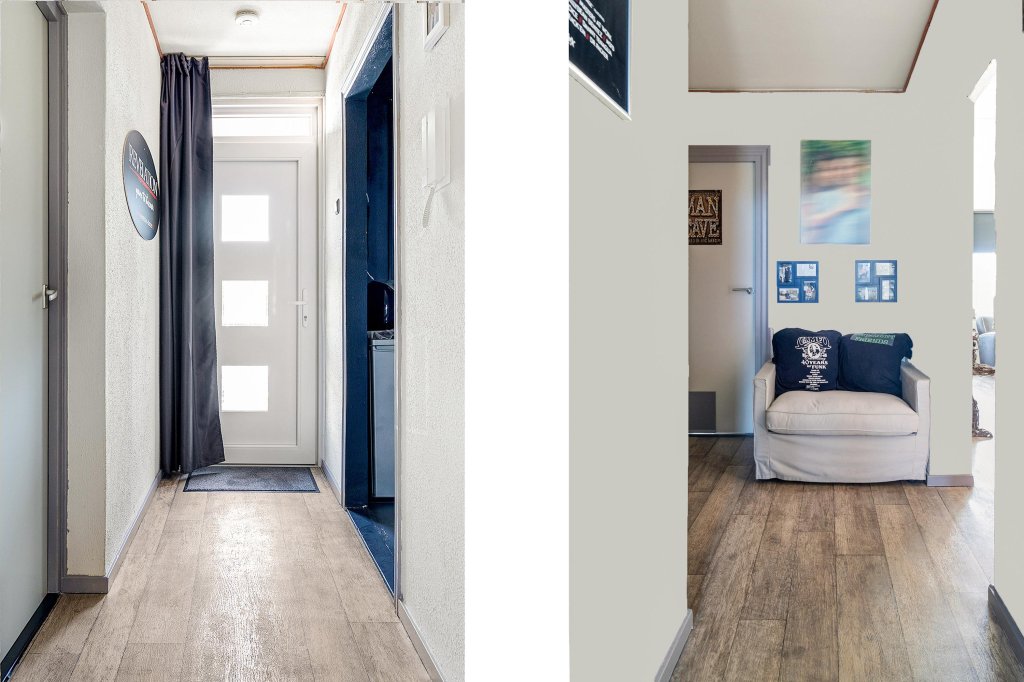 U betreedt het appartement in de hal, vanwaar u toegang heeft tot alle vertrekken. De hal is afgewerkt met een laminaatvloer.