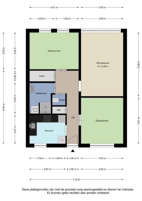 Alle door ons kantoor verstrekte informatie omtrent onroerende zaken, moet beschouwd worden als een uitnodiging om in onderhandeling te treden, en is geheel vrijblijvend! Alle vermelde maten en afmetingen zijn slechts bij benadering. Aan deze beperkte info kunnen geen rechten worden ontleend. Indien in enige documentatie of op enige website informatie staat die niet overeen komt met de werkelijkheid, dan geldt de feitelijke situatie waarin de woning zich bevindt, zoals koper deze tijdens de bezichtiging heeft kunnen waarnemen, en wordt de woning in deze feitelijke situatie/staat verkocht. Een (eventueel) bijgevoegde plattegrond dient uitsluitend als globale indicatie/visualisatie. Hieraan kunnen uitdrukkelijk geen rechten worden ontleend.