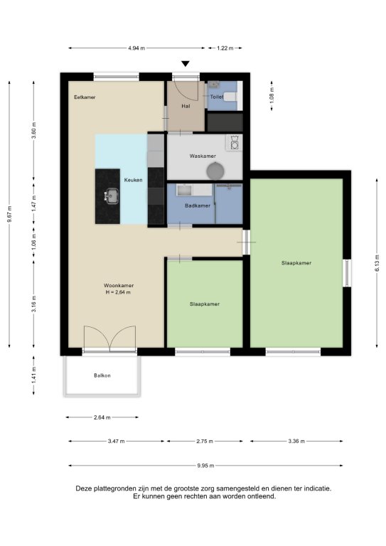 Alle door ons kantoor verstrekte informatie omtrent onroerende zaken, moet beschouwd worden als een uitnodiging om in onderhandeling te treden, en is geheel vrijblijvend! Alle vermelde maten en afmetingen zijn slechts bij benadering. Aan deze beperkte info kunnen geen rechten worden ontleend. Indien in enige documentatie of op enige website informatie staat die niet overeen komt met de werkelijkheid, dan geldt de feitelijke situatie waarin de woning zich bevindt, zoals koper deze tijdens de bezichtiging heeft kunnen waarnemen, en wordt de woning in deze feitelijke situatie/staat verkocht. Een (eventueel) bijgevoegde plattegrond dient uitsluitend als globale indicatie/visualisatie. Hieraan kunnen uitdrukkelijk geen rechten worden ontleend.