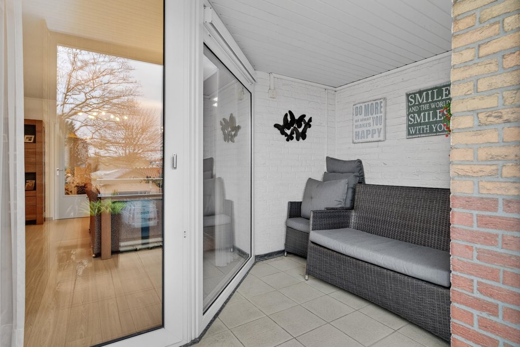 Vanaf de woonkamer is er toegang tot het overdekt balkon.