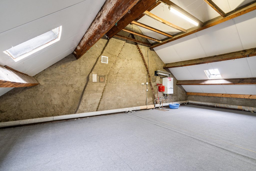 Via een vaste trap bereik je de zolderverdieping. Op de overloop bevindt zich de cv-installatie. Daarnaast is er een royale zolderkamer met vloerbedekking, die uitstekend dienst kan doen als extra slaapkamer, werkkamer of hobbyruimte.