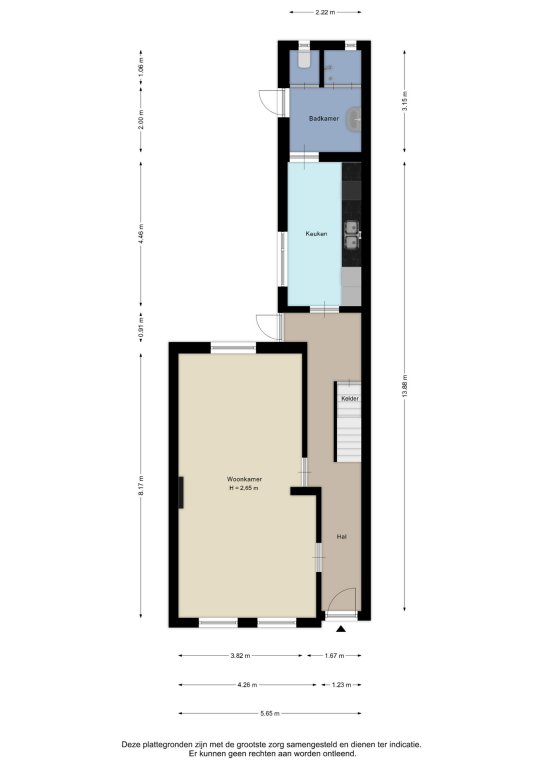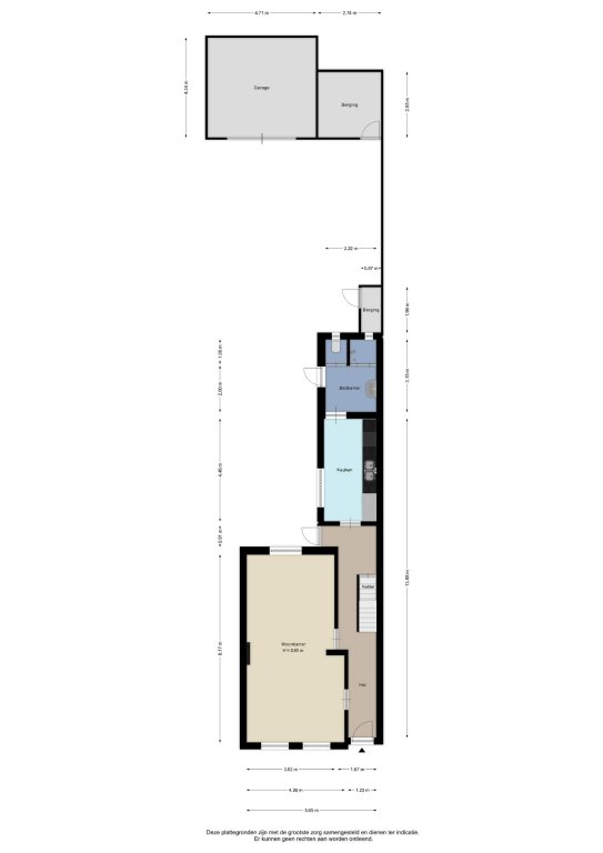 Alle door ons kantoor verstrekte informatie omtrent onroerende zaken, moet beschouwd worden als een uitnodiging om in onderhandeling te treden, en is geheel vrijblijvend! Alle vermelde maten en afmetingen zijn slechts bij benadering. Aan deze beperkte info kunnen geen rechten worden ontleend. Indien in enige documentatie of op enige website informatie staat die niet overeen komt met de werkelijkheid, dan geldt de feitelijke situatie waarin de woning zich bevindt, zoals koper deze tijdens de bezichtiging heeft kunnen waarnemen, en wordt de woning in deze feitelijke situatie/staat verkocht. Een (eventueel) bijgevoegde plattegrond dient uitsluitend als globale indicatie/visualisatie. Hieraan kunnen uitdrukkelijk geen rechten worden ontleend.