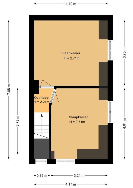 Slaapkamer 1: ca. 4.19x3.70m met laminaatvloer.