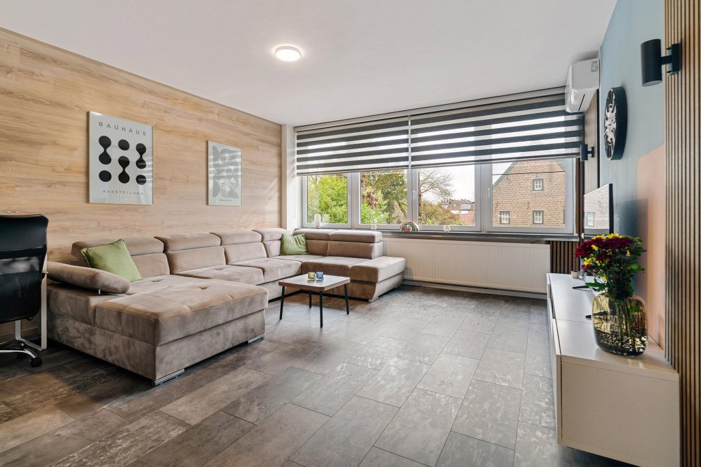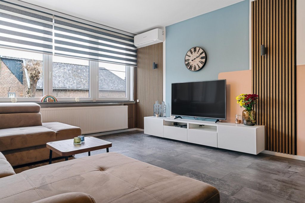 De sfeervolle woonkamer met vrij uitzicht aan de voorzijde is voorzien van een nette laminaatvloer.