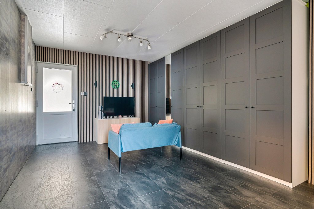 Aan de linkerzijde van de woning treft u in de aanbouw (die separaat te bereiken is vanuit de straat) een extra woonkamer/hobbyruimte of speelkamer aan.