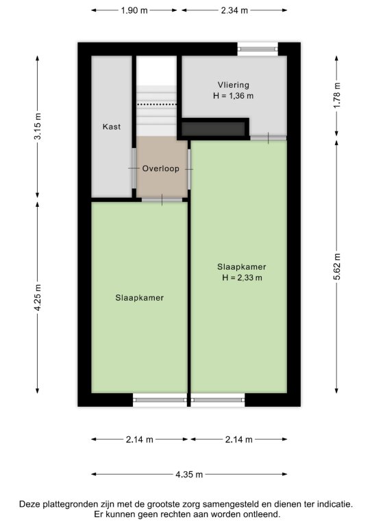 Vanuit 1 slaapkamer heeft u toegang tot een praktische bergzolder.