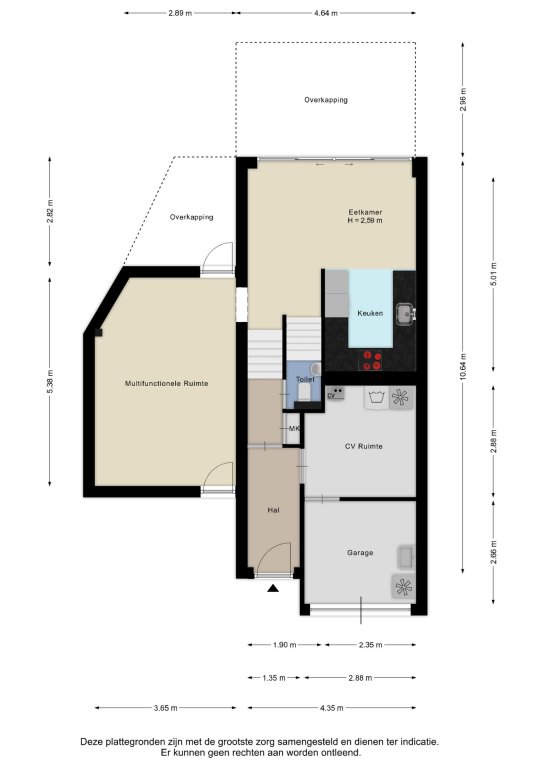 Alle door ons kantoor verstrekte informatie omtrent onroerende zaken, moet beschouwd worden als een uitnodiging om in onderhandeling te treden, en is geheel vrijblijvend! Alle vermelde maten en afmetingen zijn slechts bij benadering. Aan deze beperkte info kunnen geen rechten worden ontleend. Indien in enige documentatie of op enige website informatie staat die niet overeen komt met de werkelijkheid, dan geldt de feitelijke situatie waarin de woning zich bevindt, zoals koper deze tijdens de bezichtiging heeft kunnen waarnemen, en wordt de woning in deze feitelijke situatie/staat verkocht. Een (eventueel) bijgevoegde plattegrond dient uitsluitend als globale indicatie/visualisatie. Hieraan kunnen uitdrukkelijk geen rechten worden ontleend.