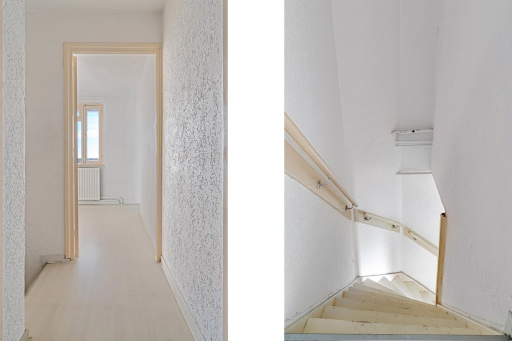 Via de overloop bereikt u drie slaapkamers, de badkamer en een aparte c.v.-ruimte.