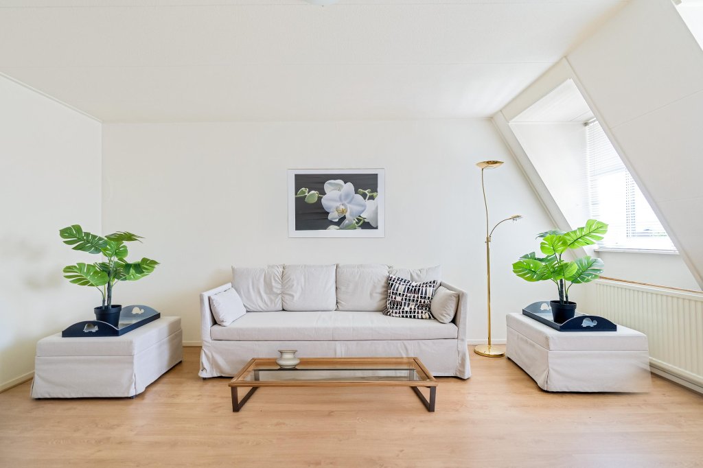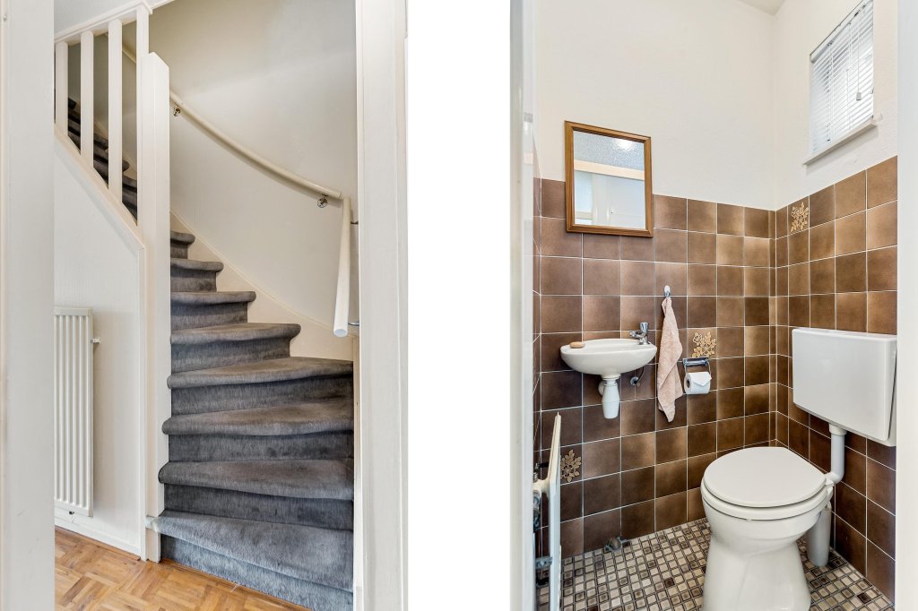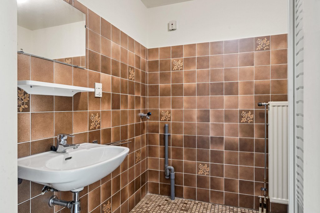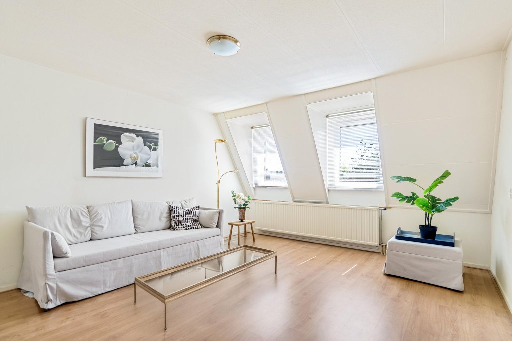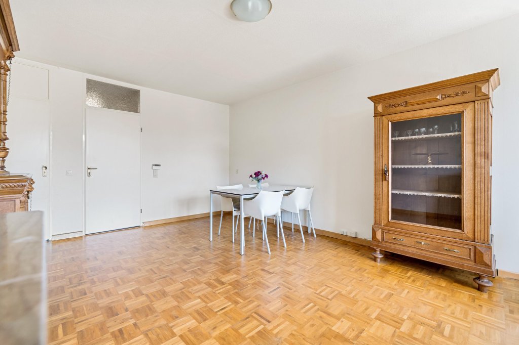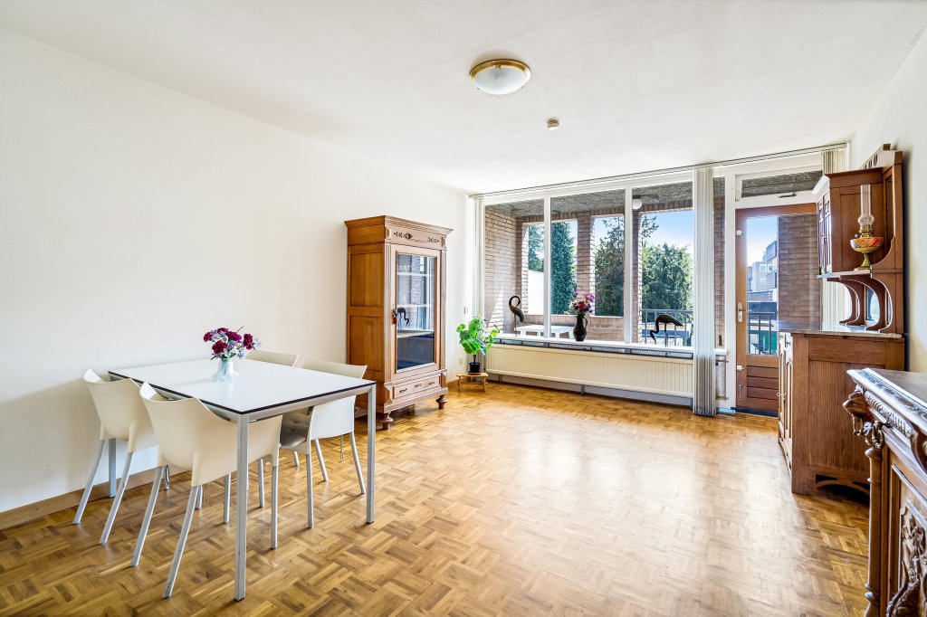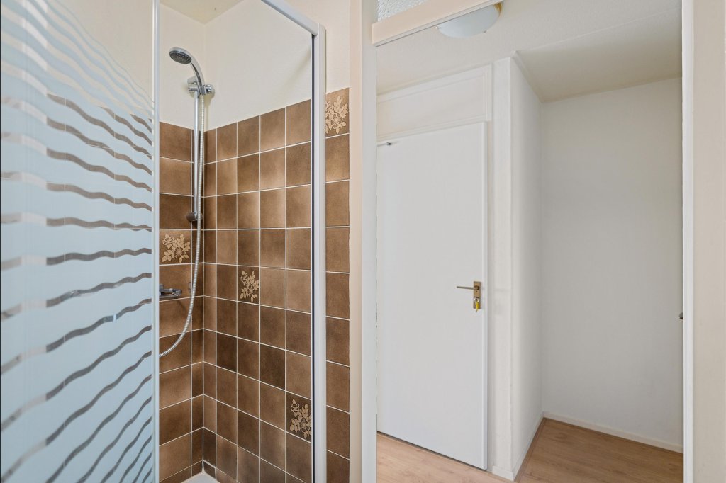Entree/hal met toegang tot het betegelde toilet met fonteintje. De woonkamer (ca. 25 m²) is voorzien van een parketvloer, een zitgedeelte en een praktische muurkast. Vanuit de woonkamer heeft u toegang tot het overdekte balkon (ca. 5 m²), ideaal voor een kopje koffie in de ochtendzon.