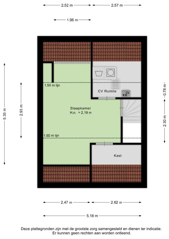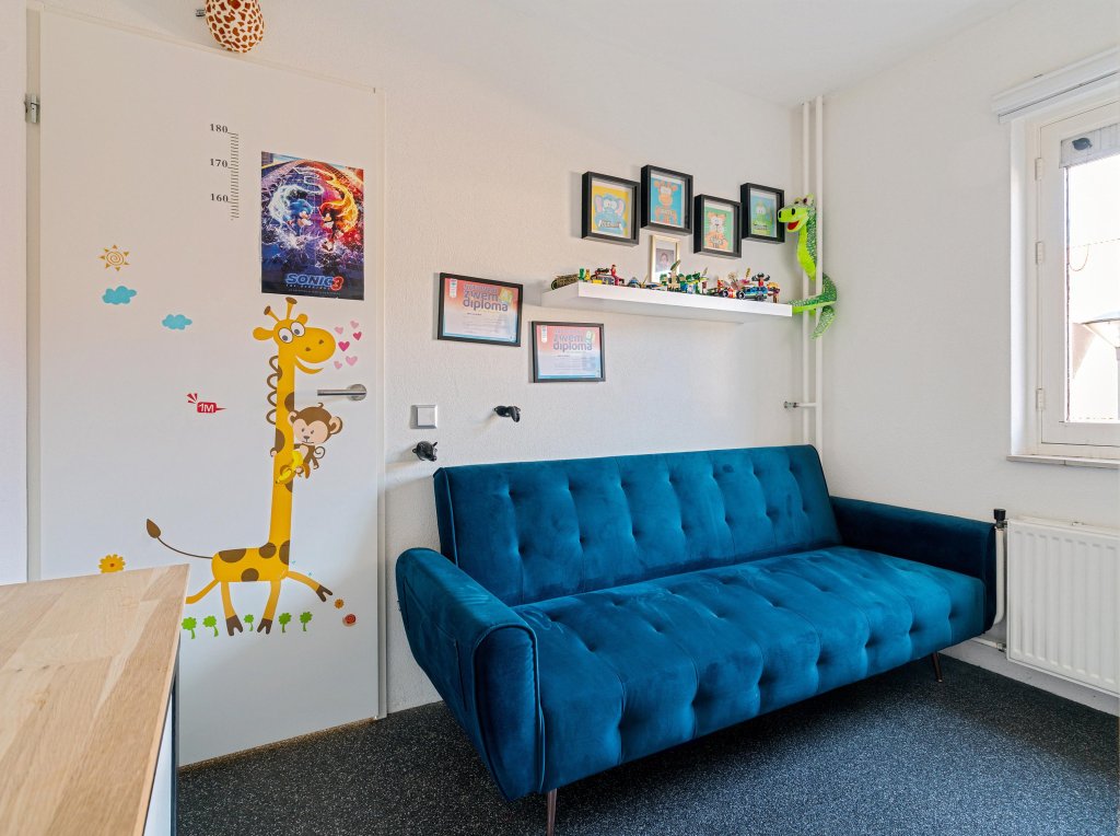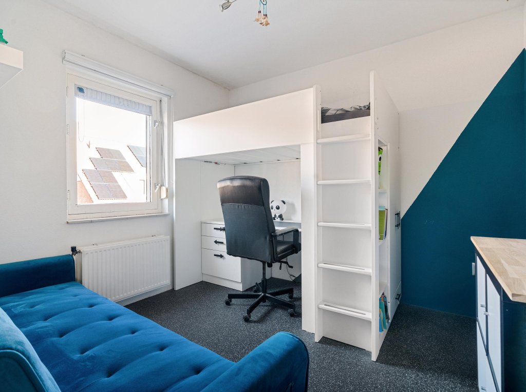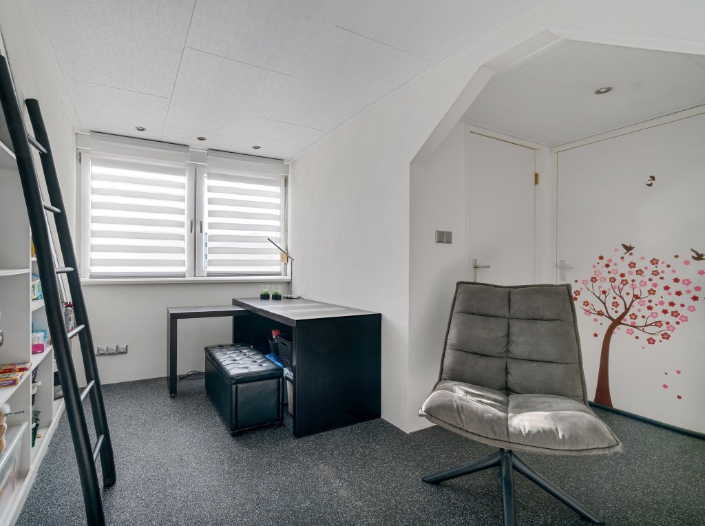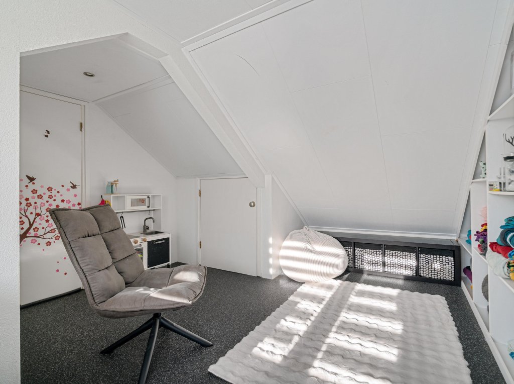 De tweede verdieping biedt een extra slaapkamer met dakkapel en bergruimte. Vanuit deze slaapkamer is de cv-ruimte bereikbaar, waar de cv-ketel zich bevindt. Ook deze verdieping is voorzien van een grindvloer en kan dienen als extra woonruimte of slaapkamer naar wens.