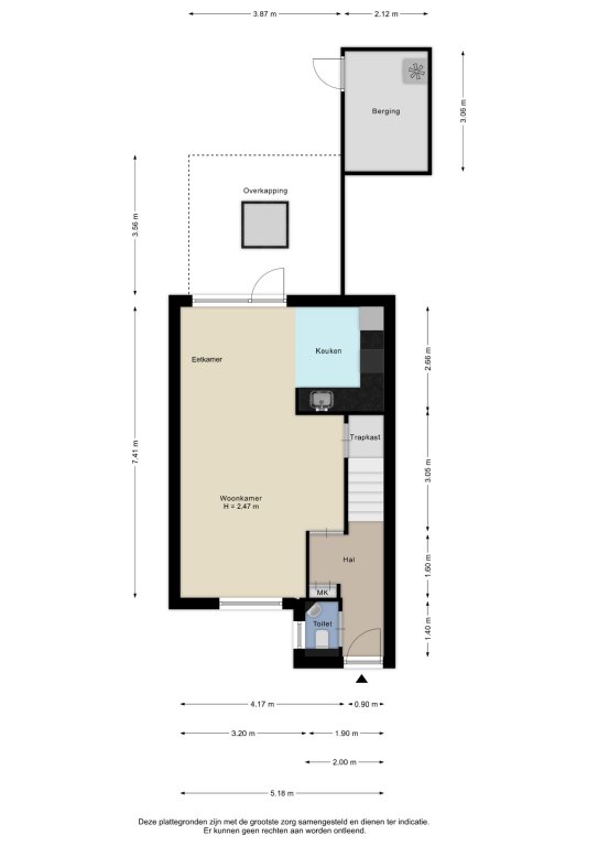 Alle door ons kantoor verstrekte informatie omtrent onroerende zaken, moet beschouwd worden als een uitnodiging om in onderhandeling te treden, en is geheel vrijblijvend! Alle vermelde maten en afmetingen zijn slechts bij benadering. Aan deze beperkte info kunnen geen rechten worden ontleend. Indien in enige documentatie of op enige website informatie staat die niet overeen komt met de werkelijkheid, dan geldt de feitelijke situatie waarin de woning zich bevindt, zoals koper deze tijdens de bezichtiging heeft kunnen waarnemen, en wordt de woning in deze feitelijke situatie/staat verkocht. Een (eventueel) bijgevoegde plattegrond dient uitsluitend als globale indicatie/visualisatie. Hieraan kunnen uitdrukkelijk geen rechten worden ontleend.