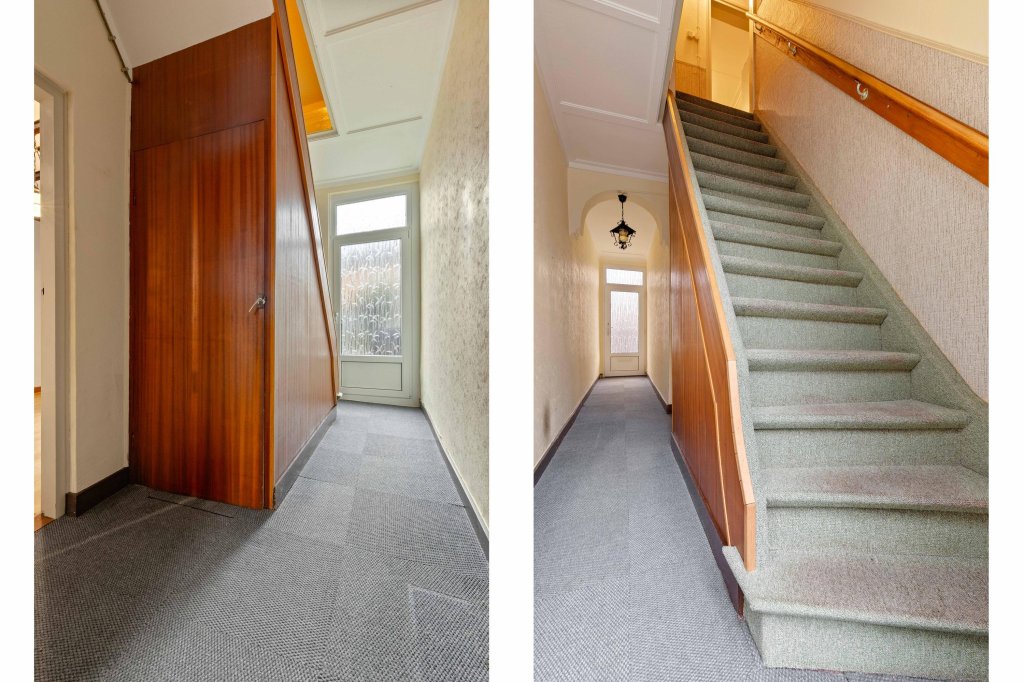 Entree/hal met toegang tot de opgang verdieping, meterkast, woonkamer en keuken.