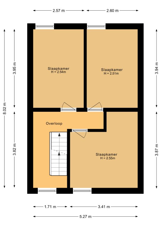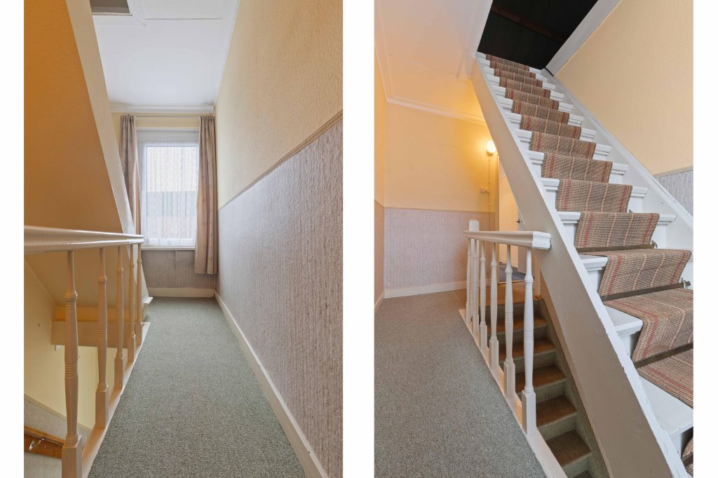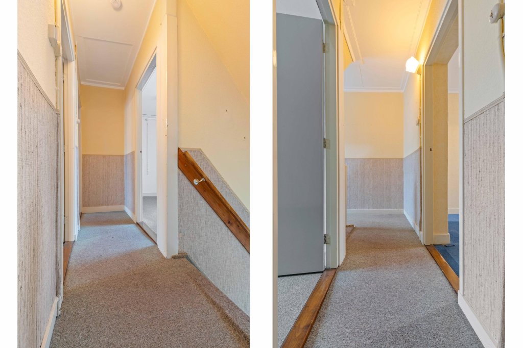 De overloop biedt toegang tot drie slaapkamers (resp. 13, 10 en 10m²).