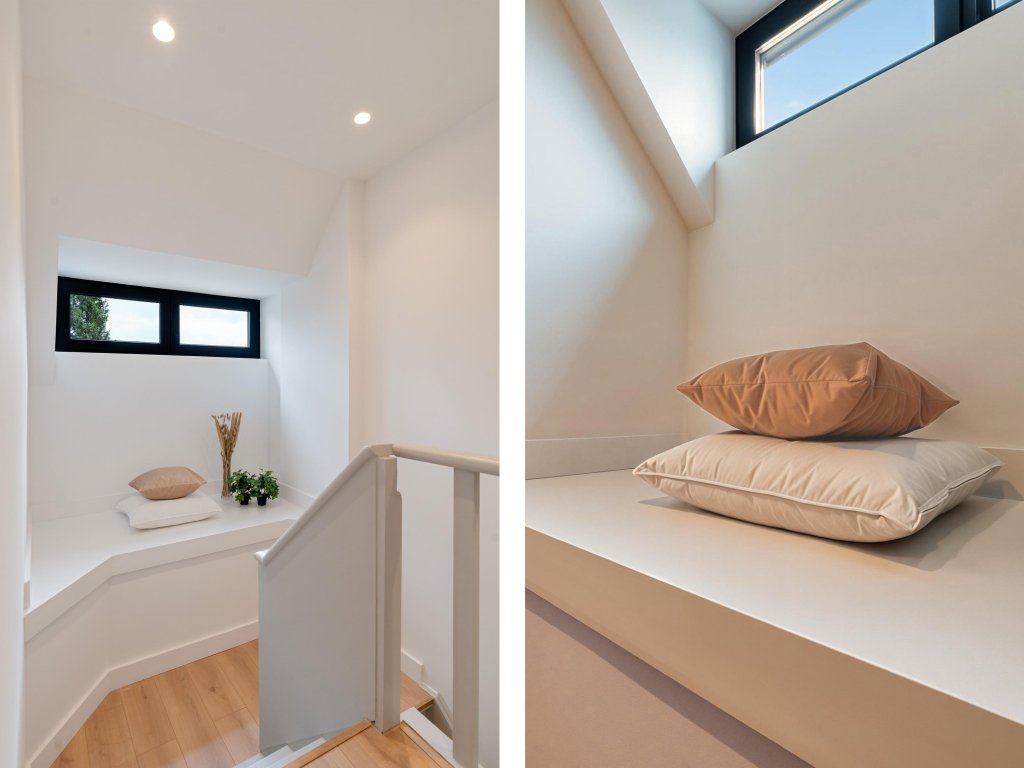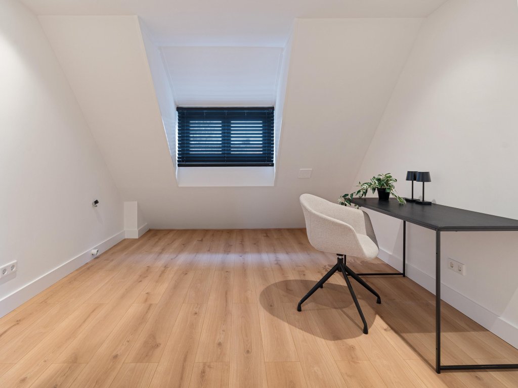 De zolderverdieping beschikt over twee slaapkamers, waarvan één met vide. Beide kamers zijn voorzien van dakkapellen en dakramen, wat zorgt voor veel lichtinval. Deze verdieping is tevens uitgerust met airconditioning, wat een aangenaam binnenklimaat garandeert gedurende het hele jaar. Ook hier is een witgoedaansluiting voorzien, zodat u kunt kiezen tussen wassen op zolder of in het souterrain.
