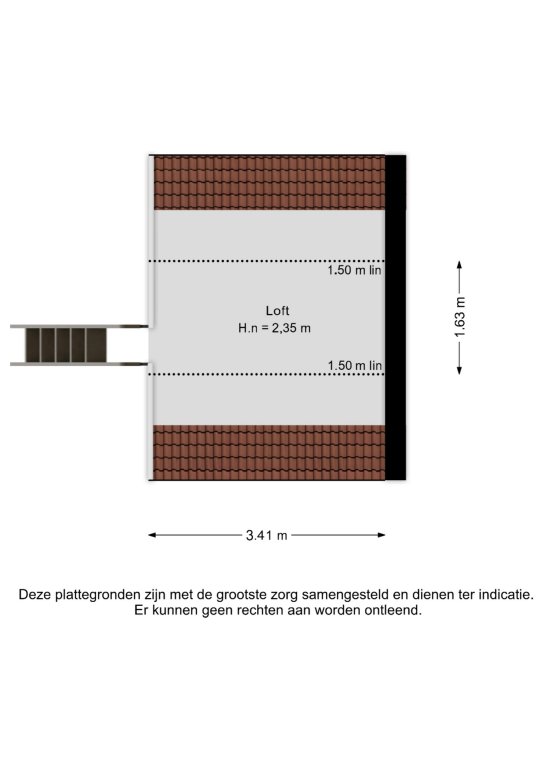 Alle door ons kantoor verstrekte informatie omtrent onroerende zaken, moet beschouwd worden als een uitnodiging om in onderhandeling te treden, en is geheel vrijblijvend! Alle vermelde maten en afmetingen zijn slechts bij benadering. Aan deze beperkte info kunnen geen rechten worden ontleend. Indien in enige documentatie of op enige website informatie staat die niet overeen komt met de werkelijkheid, dan geldt de feitelijke situatie waarin de woning zich bevindt, zoals koper deze tijdens de bezichtiging heeft kunnen waarnemen, en wordt de woning in deze feitelijke situatie/staat verkocht. Een (eventueel) bijgevoegde plattegrond dient uitsluitend als globale indicatie/visualisatie. Hieraan kunnen uitdrukkelijk geen rechten worden ontleend.