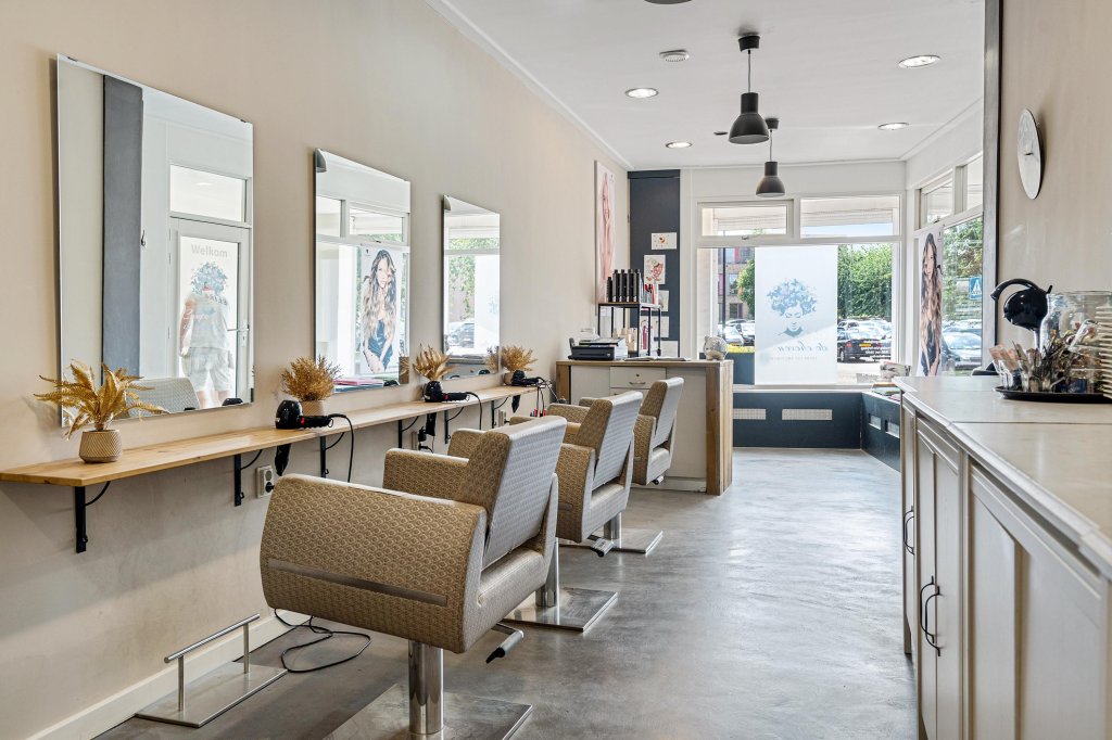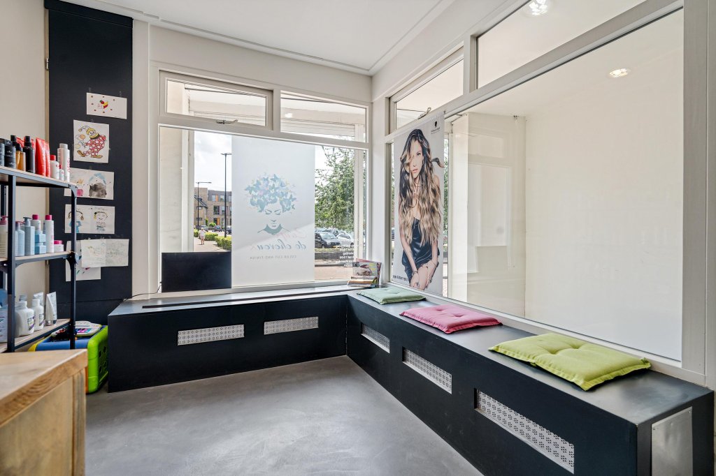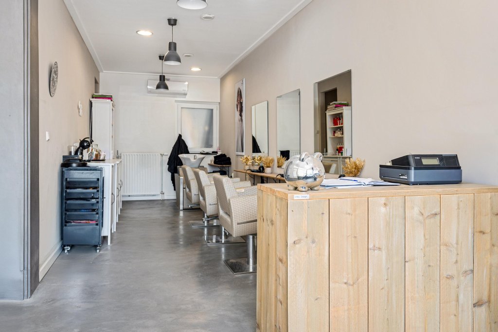 De voormalige winkelruimte (momenteel kapsalon) beschikt over een strakke gietvloer, airconditioning en is veelzijdig inzetbaar. Aansluitend een separate keuken met keukenblok en toiletruimte voorzien van zwevend closet. Achterin bevindt zich een hobbyruimte met openslaande tuindeuren voorzien van triple glas naar een sfeervolle, omsloten patiotuin. Daarnaast is er een ruime, inpandige berging aanwezig.