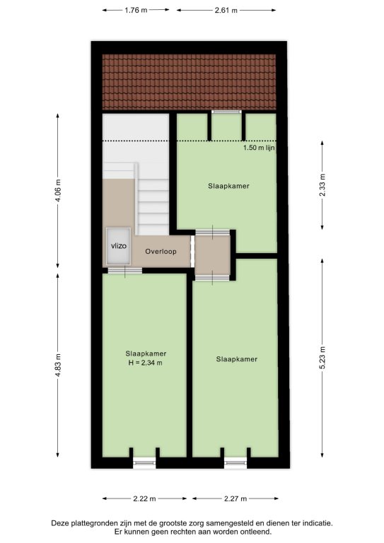 Alle door ons kantoor verstrekte informatie omtrent onroerende zaken, moet beschouwd worden als een uitnodiging om in onderhandeling te treden, en is geheel vrijblijvend! Alle vermelde maten en afmetingen zijn slechts bij benadering. Aan deze beperkte info kunnen geen rechten worden ontleend. Indien in enige documentatie of op enige website informatie staat die niet overeen komt met de werkelijkheid, dan geldt de feitelijke situatie waarin de woning zich bevindt, zoals koper deze tijdens de bezichtiging heeft kunnen waarnemen, en wordt de woning in deze feitelijke situatie/staat verkocht. Een (eventueel) bijgevoegde plattegrond dient uitsluitend als globale indicatie/visualisatie. Hieraan kunnen uitdrukkelijk geen rechten worden ontleend.
