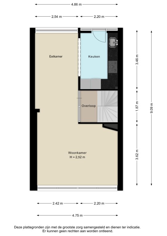 Alle door ons kantoor verstrekte informatie omtrent onroerende zaken, moet beschouwd worden als een uitnodiging om in onderhandeling te treden, en is geheel vrijblijvend! Alle vermelde maten en afmetingen zijn slechts bij benadering. Aan deze beperkte info kunnen geen rechten worden ontleend. Indien in enige documentatie of op enige website informatie staat die niet overeen komt met de werkelijkheid, dan geldt de feitelijke situatie waarin de woning zich bevindt, zoals koper deze tijdens de bezichtiging heeft kunnen waarnemen, en wordt de woning in deze feitelijke situatie/staat verkocht. Een (eventueel) bijgevoegde plattegrond dient uitsluitend als globale indicatie/visualisatie. Hieraan kunnen uitdrukkelijk geen rechten worden ontleend.