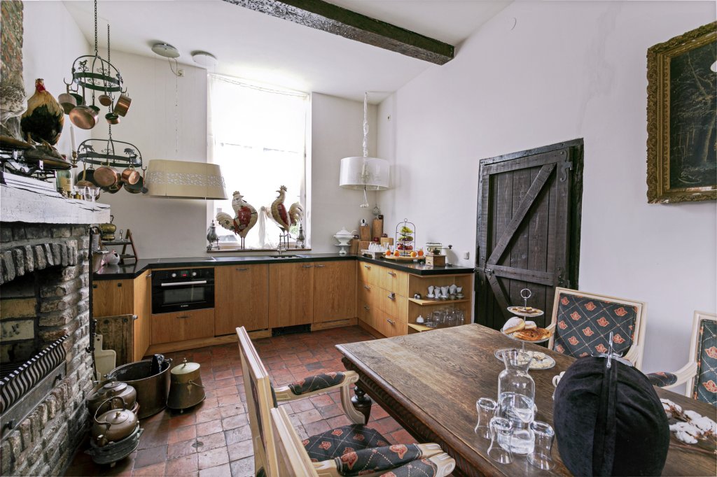 Bij binnenkomst ademt de ruimte direct sfeer. De trappartij, waarbij het originele houtwerk nog te zien is, springt direct in het oog. Onder de trappartij bevindt zich het gastentoilet met klassiek fonteintje. Middels nieuwe doch authentieke deuren komt u rechts in de keuken voorzien van alle denkbare gemakken. De antieke boeren plavuizenvloer is voorzien van vloerverwarming en er is tevens een haardpartij aanwezig. Aan de linkerzijde van de entree bevindt zich de living met openslaande deuren naar de patiotuin. Ook hier is een haardpartij en zijn er authentieke elementen zichtbaar zoals de balkenstructuur. Tevens is de kelder vanuit de living bereikbaar.