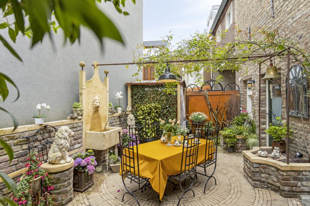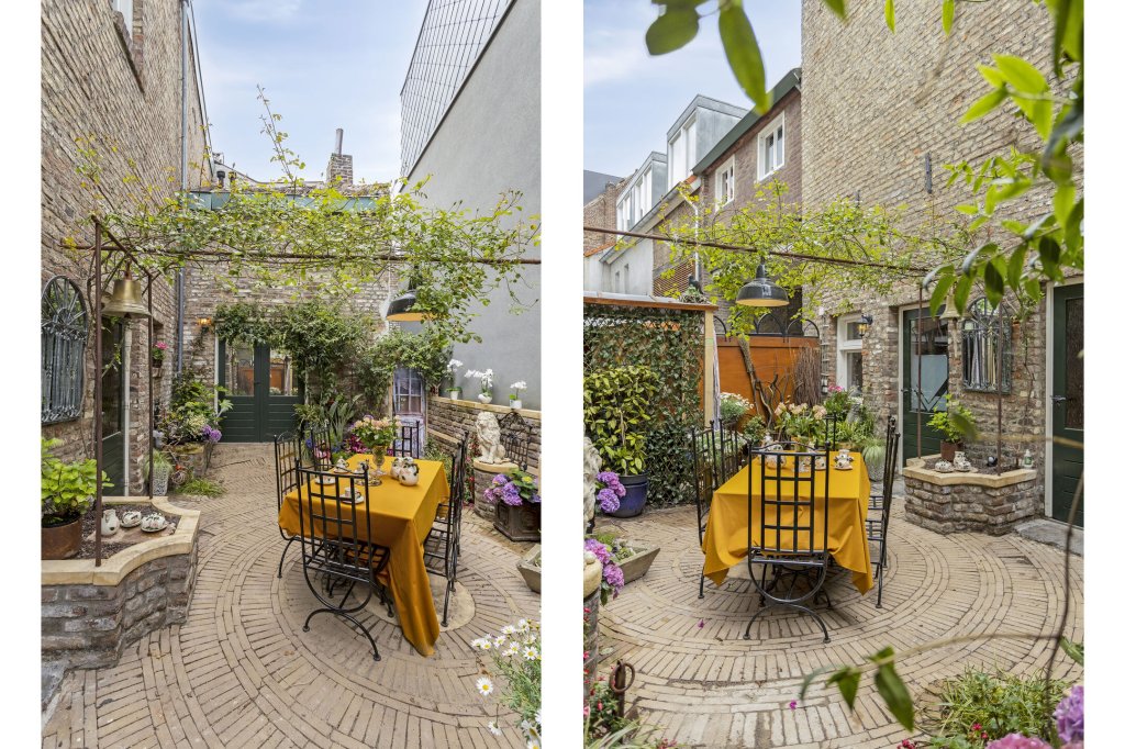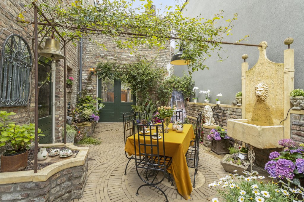 Een sfeervolle patiotuin, die bereikbaar is via de living, keuken en entree.