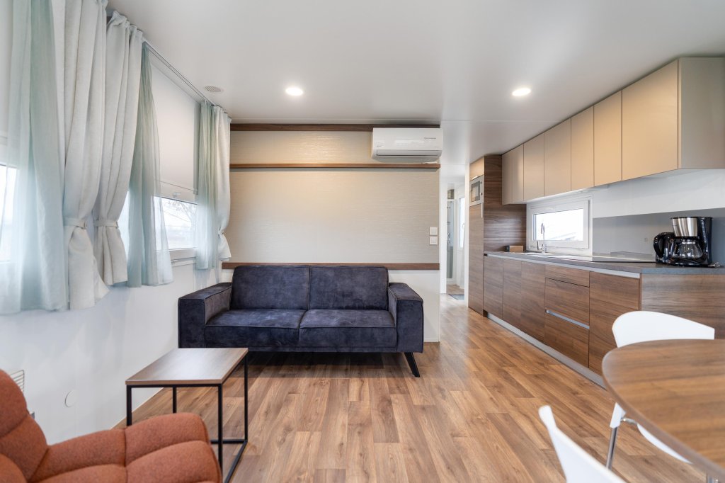 Bij binnenkomst betreed je de gezellige woonkamer van ca. 3,79 m breed en 4,26 m diep. De open keuken is efficiënt ingericht en voorzien van de benodigde apparatuur voor dagelijks comfort.