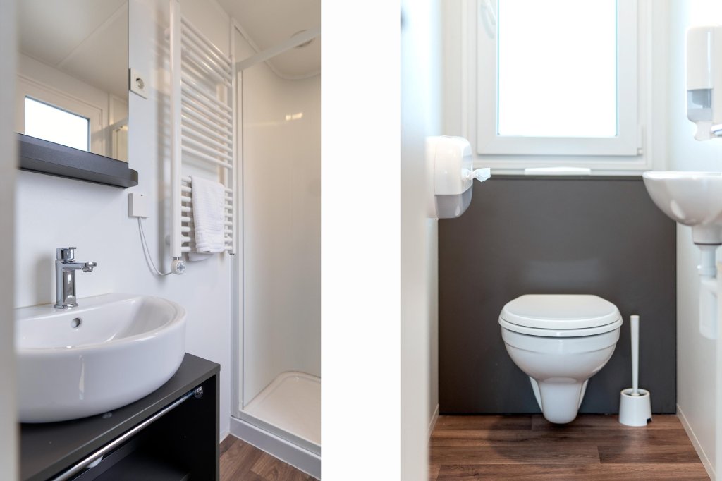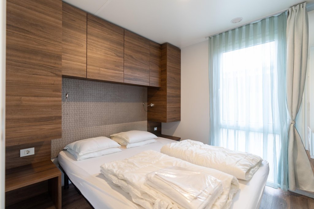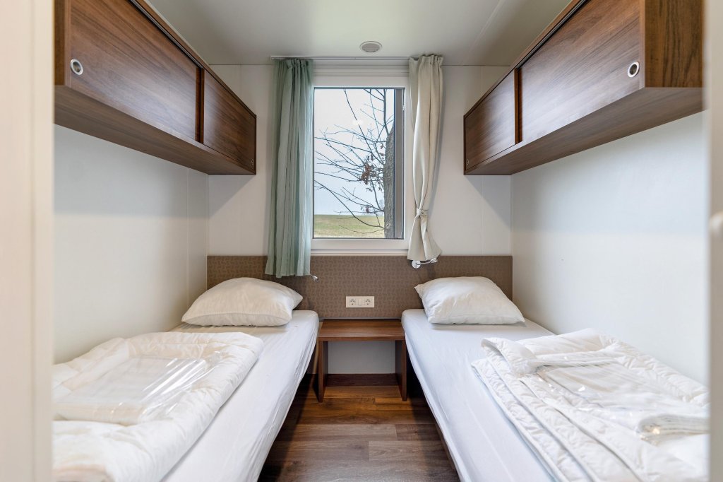 De bungalow beschikt over twee comfortabele slaapkamers, beide met een fijn formaat. De eerste slaapkamer heeft een afmeting van 2,55 m bij 2,56 m, ideaal als hoofdslaapkamer. De tweede slaapkamer meet 2,11m bij 2,23 m en biedt voldoende ruimte voor gasten of een extra familielid.