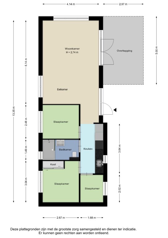 Alle door ons kantoor verstrekte informatie omtrent onroerende zaken, moet beschouwd worden als een uitnodiging om in onderhandeling te treden, en is geheel vrijblijvend! Alle vermelde maten en afmetingen zijn slechts bij benadering. Aan deze beperkte info kunnen geen rechten worden ontleend. Indien in enige documentatie of op enige website informatie staat die niet overeen komt met de werkelijkheid, dan geldt de feitelijke situatie waarin de woning zich bevindt, zoals koper deze tijdens de bezichtiging heeft kunnen waarnemen, en wordt de woning in deze feitelijke situatie/staat verkocht. Een (eventueel) bijgevoegde plattegrond dient uitsluitend als globale indicatie/visualisatie. Hieraan kunnen uitdrukkelijk geen rechten worden ontleend.