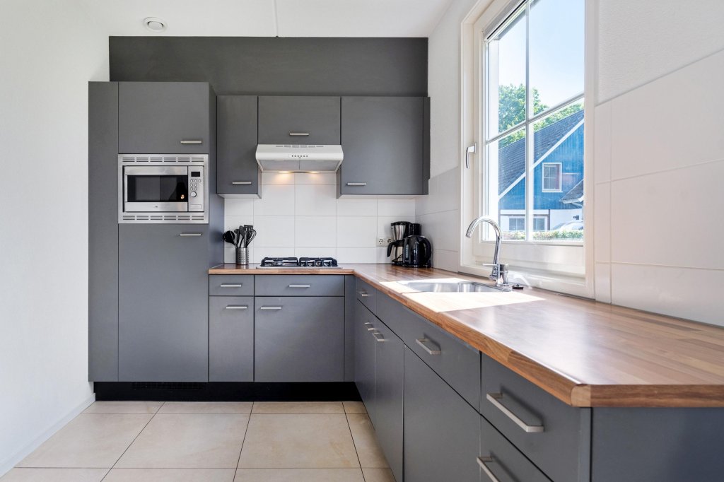 De keuken is van alle gemakken voorzien, waaronder een gasfornuis, afzuigkap, vaatwasser, combi-oven en een koel-/vriescombinatie.