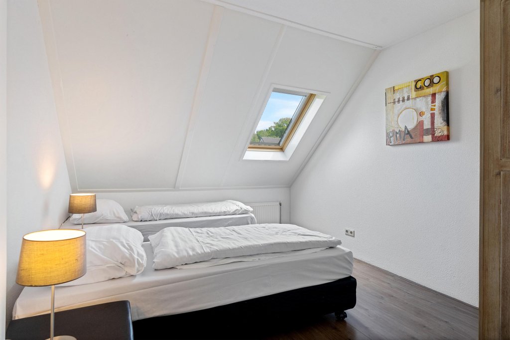 De ruime overloop geeft toegang tot vier ruime slaapkamers en twee moderne badkamers. Eén van de badkamers is uitgerust met een ligbad en een wastafelmeubel. De andere badkamer beschikt over een douche en een tweede toilet. Alle slaapkamers zijn voorzien van rolluiken en horren – ideaal voor comfort en privacy.