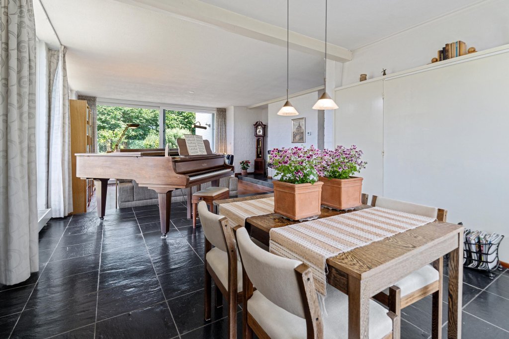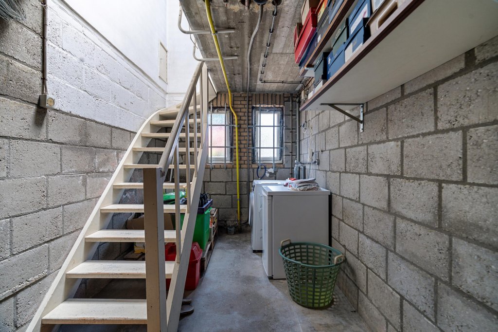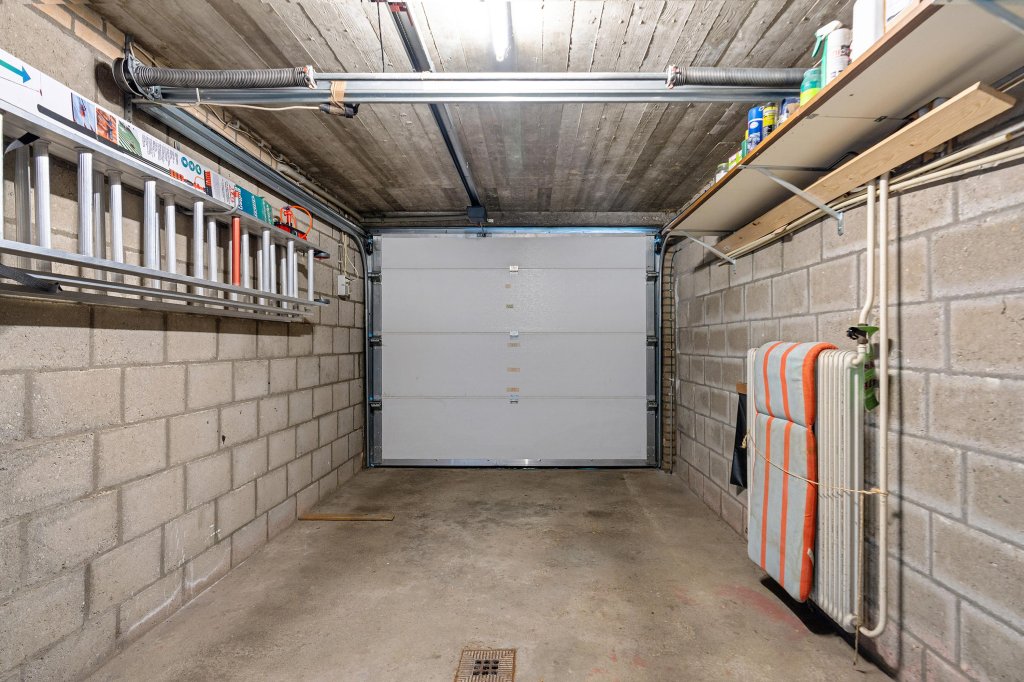 Via de oprit bereikt u de garage met een elektrische sectionaalpoort. Vanuit de garage heeft u toegang tot een provisiekelder en een trap naar de begane grond/keuken.