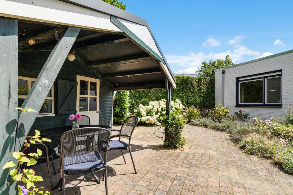 Vanuit de woonkamer bereikt u via een schuifpui de goed verzorgde tuin, die volledige privacy biedt. De tuin beschikt over een terras, borders, een zij-ingang en een houten tuinberging met overkapping.